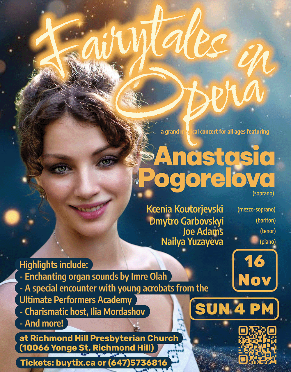 ANASTASIA POGORELOVA – coloratura soprano, graduate of the Gnessin Academy of Music (Moscow), soloist of opera festivals and projects across Canada and Europe.
